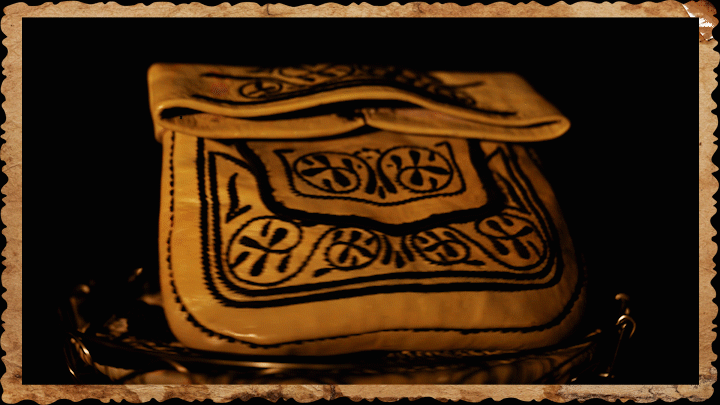 Akrabe : a leather wallet with decorative writings derived from Berber heritage. It was often used by the old men .